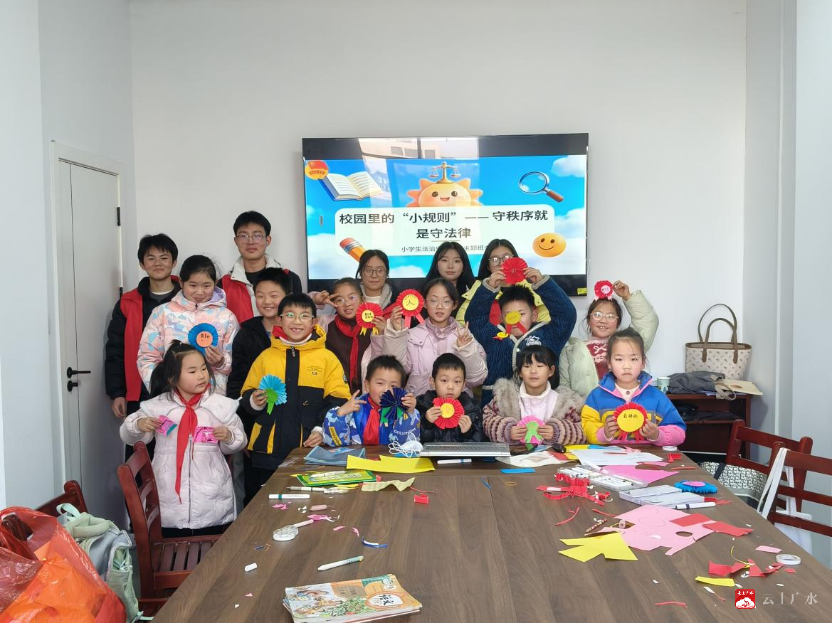 下午的法治安全教育课聚焦“校园小规则与法律”,志愿者从排队、课堂纪律等日常场景切入,通过情景模拟、案例分析及卡片承诺书创作,深入浅出传递“规则是法律的基础”理念,让孩子们树立规则意识与法治观念。