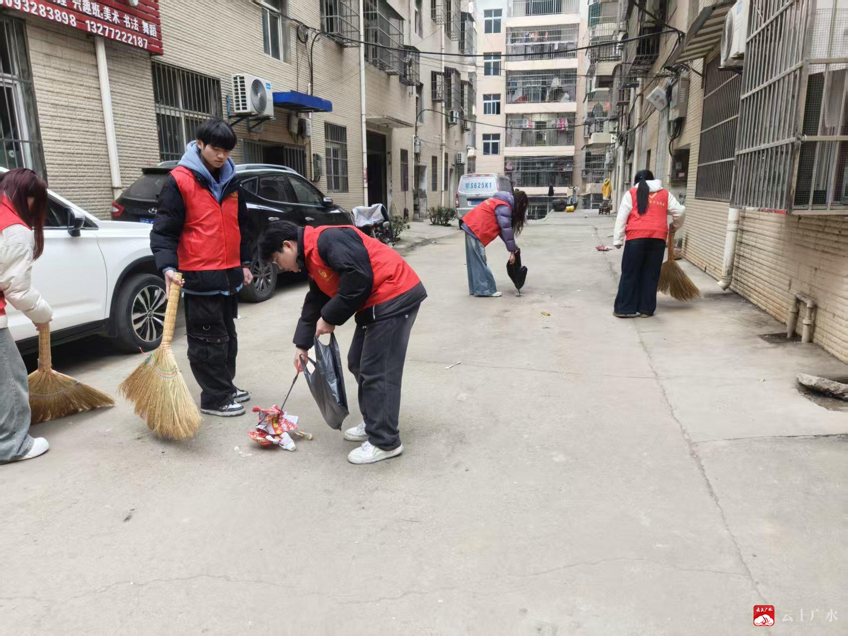 在集镇老旧小区,他们清理楼道杂物,让公共空间恢复畅通;在乡间小道,仔细捡拾绿化带中的垃圾;在余店河沿岸,分工协作守护一方碧水。面对多处顽固卫生死角,青年们轮番上阵,让“疮疤”变成示范角落。