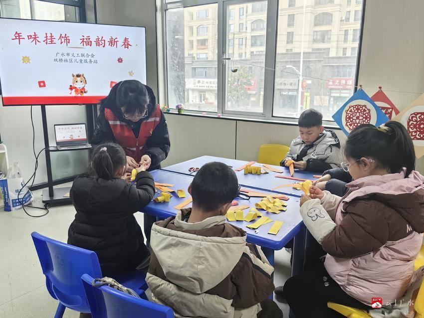 指尖传民俗,新春暖童心。2月9日,漫天飞雪,而广水市应山街道双桥社区寒假“爱心托管班”里格外温暖,一场以“年味挂饰•福韵新春”充满创意的传承非遗与年味的手工DIY活动温馨展开,丰富少年儿童寒假文化生活。