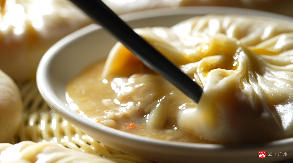 江苏泰兴的大闸蟹膏满黄肥、脂香醇厚。经过复杂的工序,做成了皮薄如纸的蟹黄汤包,这些蟹黄汤包藏着江南水乡的温润与团圆诗意,咬上一口,鲜汁喷涌,顺着指尖流淌,鲜香绵长;