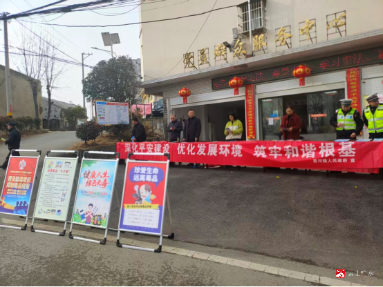 近日,蔡河镇平安办联合司法所、派出所、禁毒社区、卫生院、交警中队等、新时代文明实践所等部门,开展“深化平安建设,优化发展环境,筑牢和谐根基”主题宣传活动。