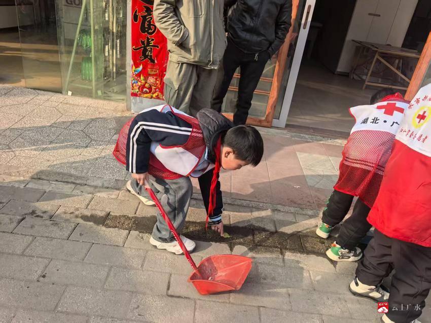 街头践行动,扮靓家园环境:走出校园,服务社会。在大队辅导员付老师的带领下,学生志愿者们手持扫帚、夹子、垃圾袋等工具,分组前往郝店镇主要街道开展清扫志愿服务。同学们不怕脏、不怕累,分工协作清理路面垃圾、捡拾绿化带中的塑料袋与烟头,细致擦拭公交站台与宣传栏,不放过任何卫生死角。过往商户与居民纷纷驻足称赞,部分热心家长还主动加入清扫队伍。经过一个多小时的奋战,街道环境焕然一新,同学们用实际行动践行了雷锋精神,也深刻体会到环卫工人的辛劳,增强了爱护环境、尊重劳动的责任意识。