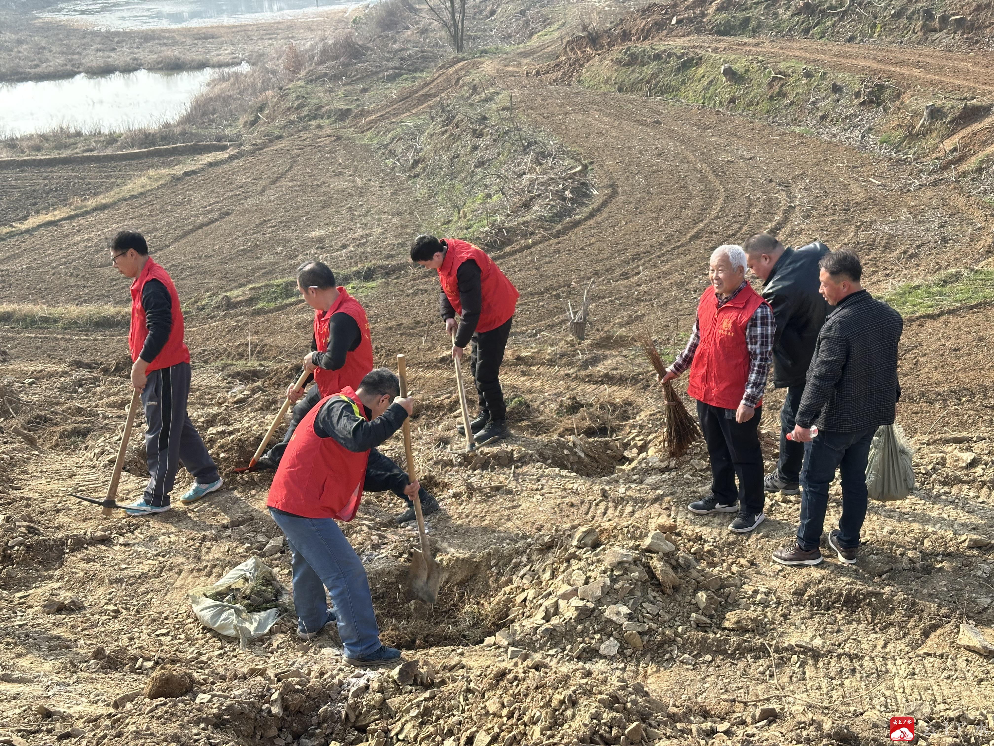 3月11日,植树节前夕,长岭镇新时代文明实践所联合镇团委、镇农办,组织全体党员干部、村委会成员及志愿者开展义务植树活动,红马甲与绿树苗交相辉映,为大地播撒春天的希望。