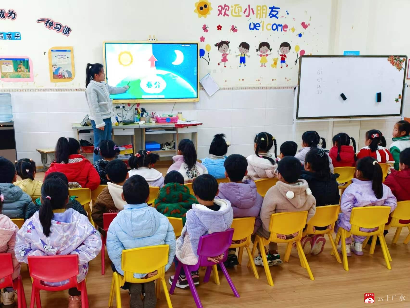 活动开始,老师们结合幼儿年龄特点,通过趣味故事、图片、儿歌等形式,向孩子们讲解了春分“昼夜平分”的自然常识,以及探春、放纸鸢、吃春菜等传统习俗,让孩子们在轻松有趣的氛围中了解节气文化,感知时节更替。