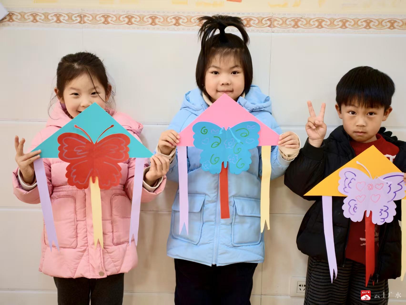 完成纸鸢后,孩子们骄傲地举起自己的作品合影留念。色彩明快的纸鸢与稚嫩的笑脸相映成趣,有的孩子还比出可爱手势,定格下这份春日里的成就感与喜悦。小小的纸鸢不仅锻炼了孩子们的动手能力与创造力,更让“放纸鸢”这一春分传统习俗在童真童趣中得以传承。