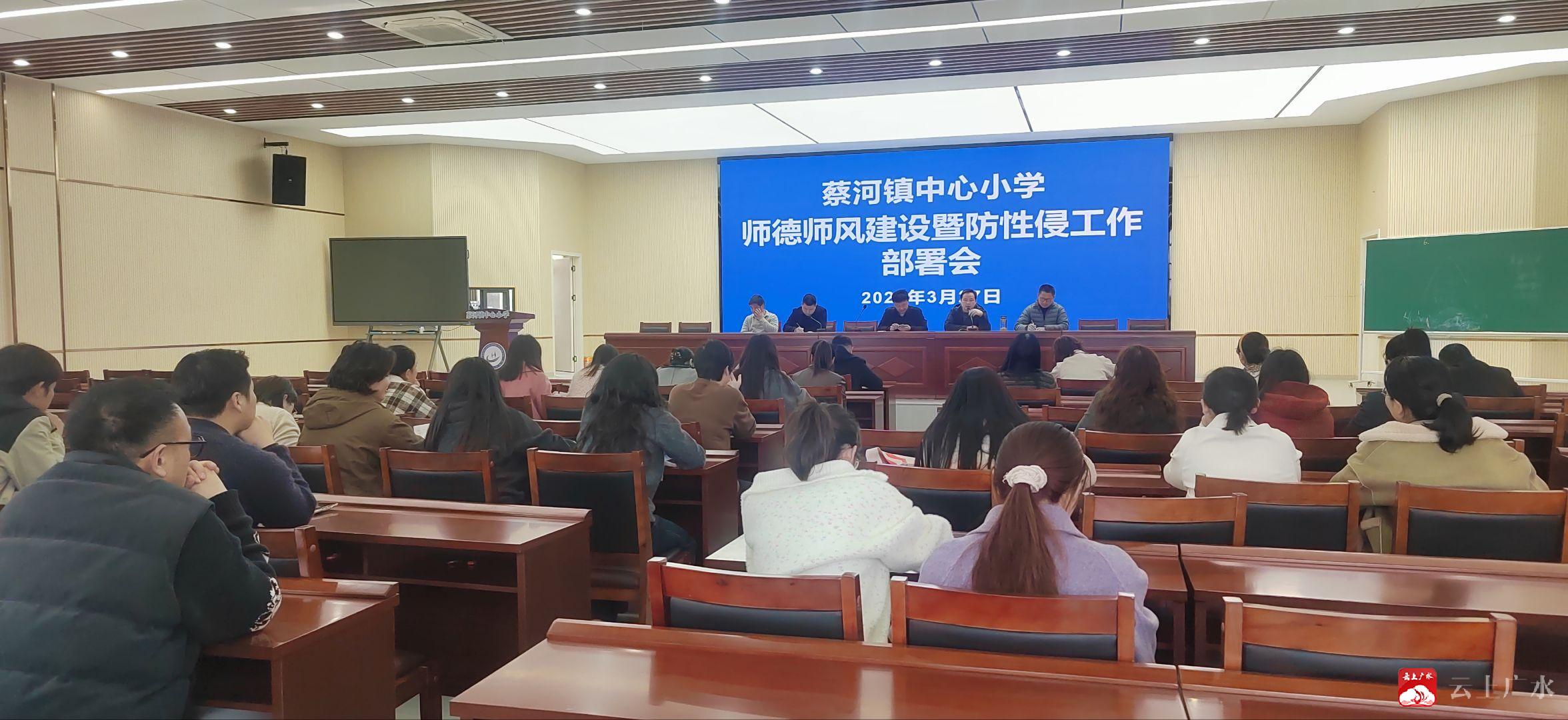 为进一步加强教师队伍建设,筑牢校园安全防线,3月27日,蔡河镇中心小学组织召开师德师风建设暨防性侵工作部署会,全体教职工参加会议。