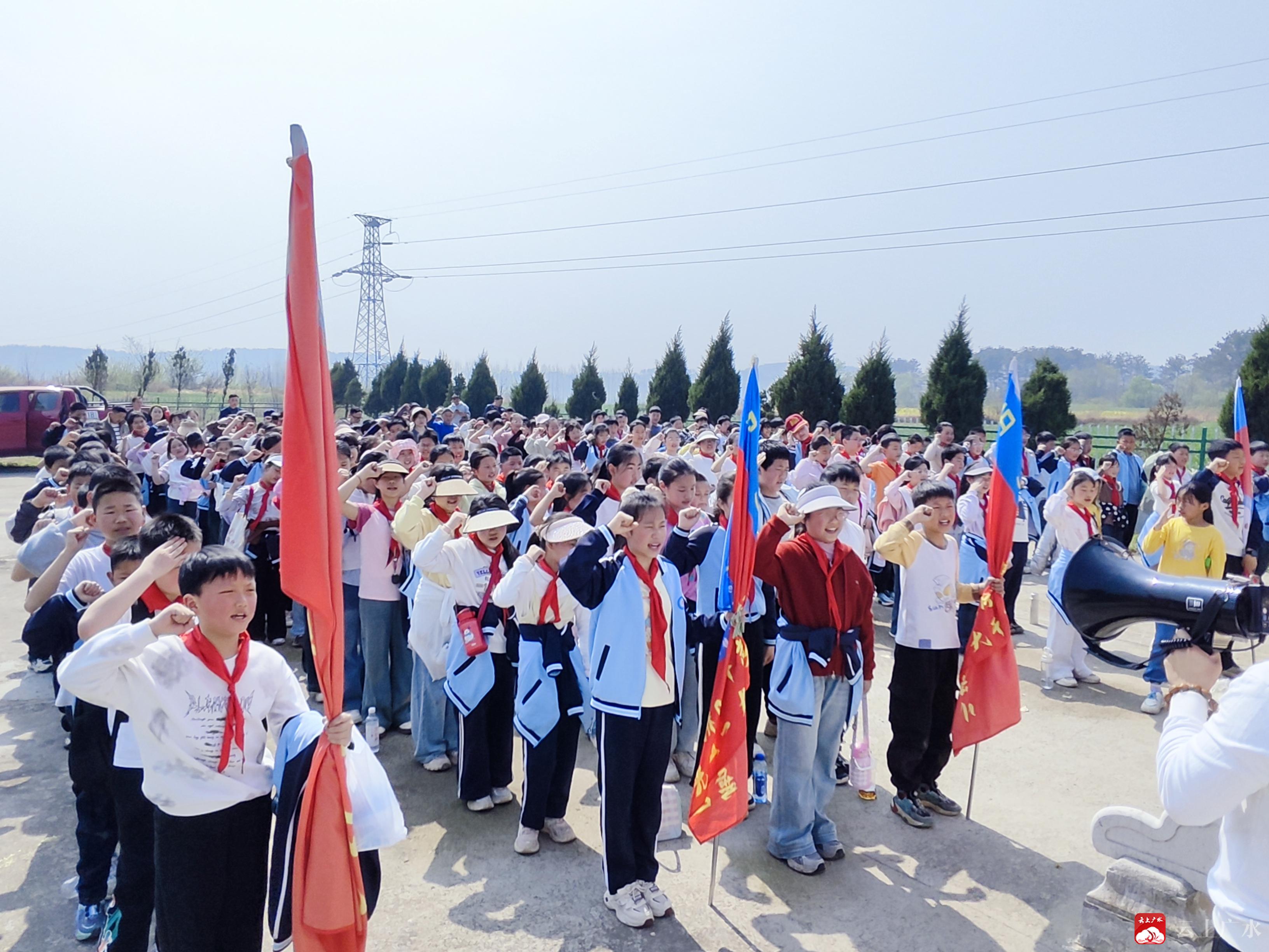 敬献鲜花后,全体师生齐唱国歌,嘹亮的歌声饱含对革命先烈的崇高敬意;随后重温入队誓词,铿锵有力的誓言响彻陵园,彰显新时代少年传承红色基因、勇担使命的责任与担当。学校负责人结合当地革命烈士英勇事迹,勉励全体师生铭记历史、不负韶华,树立远大理想,努力成长为担当民族复兴大任的时代新人。退役军人志愿服务队代表在发言中表示,希望同学们珍惜来之不易的幸福生活,将红色精神代代相传。