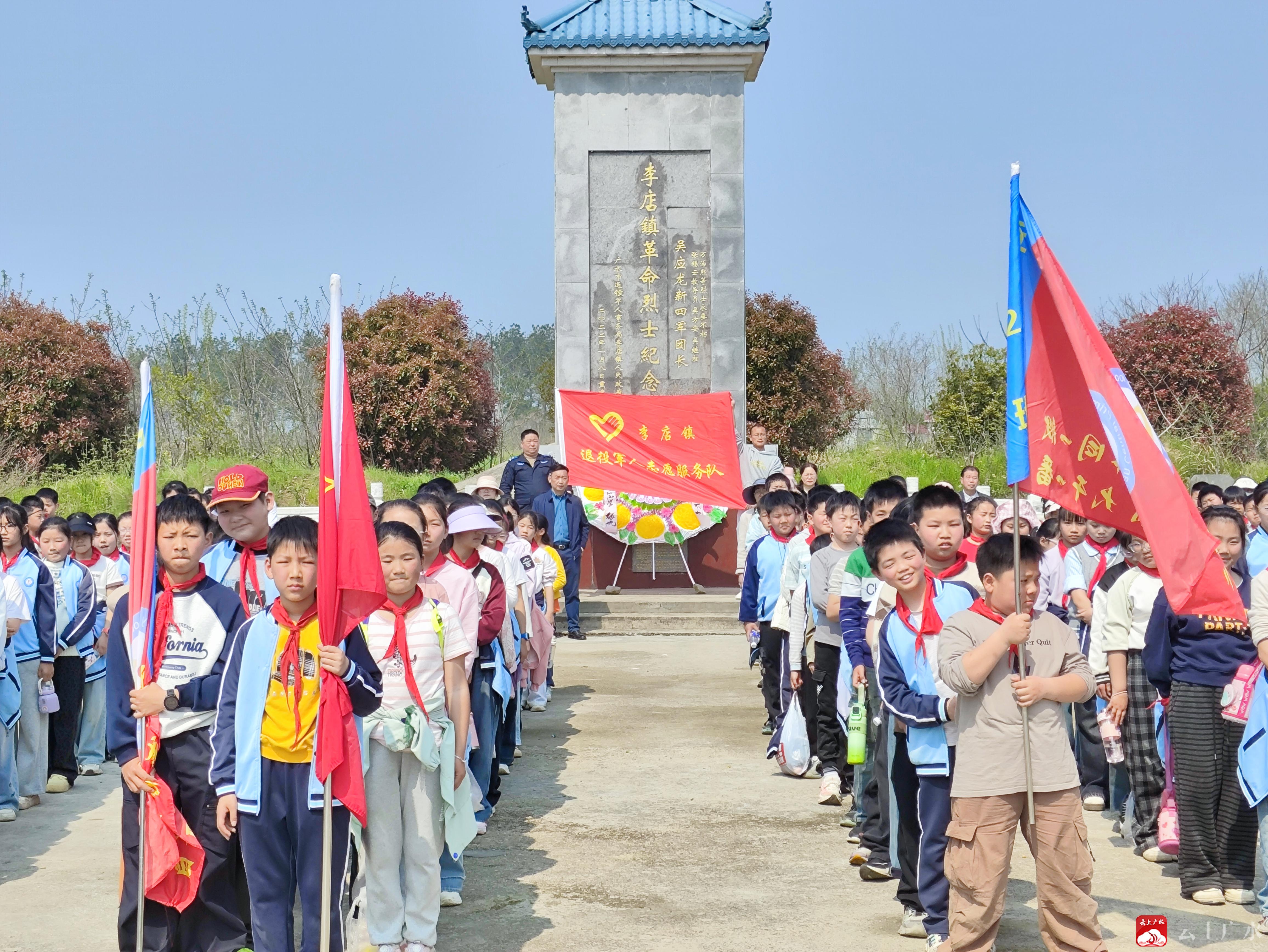 清明时节,松柏凝翠,哀思绵绵。为缅怀革命先烈、传承红色基因,深化青少年爱国主义教育,引导少年儿童铭记历史、砥砺前行,4月1日上午,李店镇退役军人志愿服务队联合李店镇中心小学,组织240名师生前往李店镇革命烈士纪念碑,开展“清明祭英烈”主题祭奠活动。