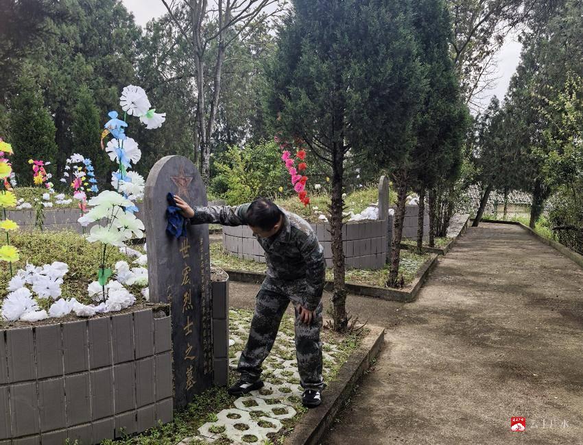 仪式结束后,长江卫士志愿服务队立即开展文明实践。退役老兵与志愿者们分工协作,有的清扫陵园道路、清除杂草落叶,有的用抹布仔细擦拭烈士墓碑。退役老兵们动作娴熟、态度虔诚,以“退役不褪色”的实际行动,展现新时期退役军人志愿服务队伍的责任担当与良好形象。