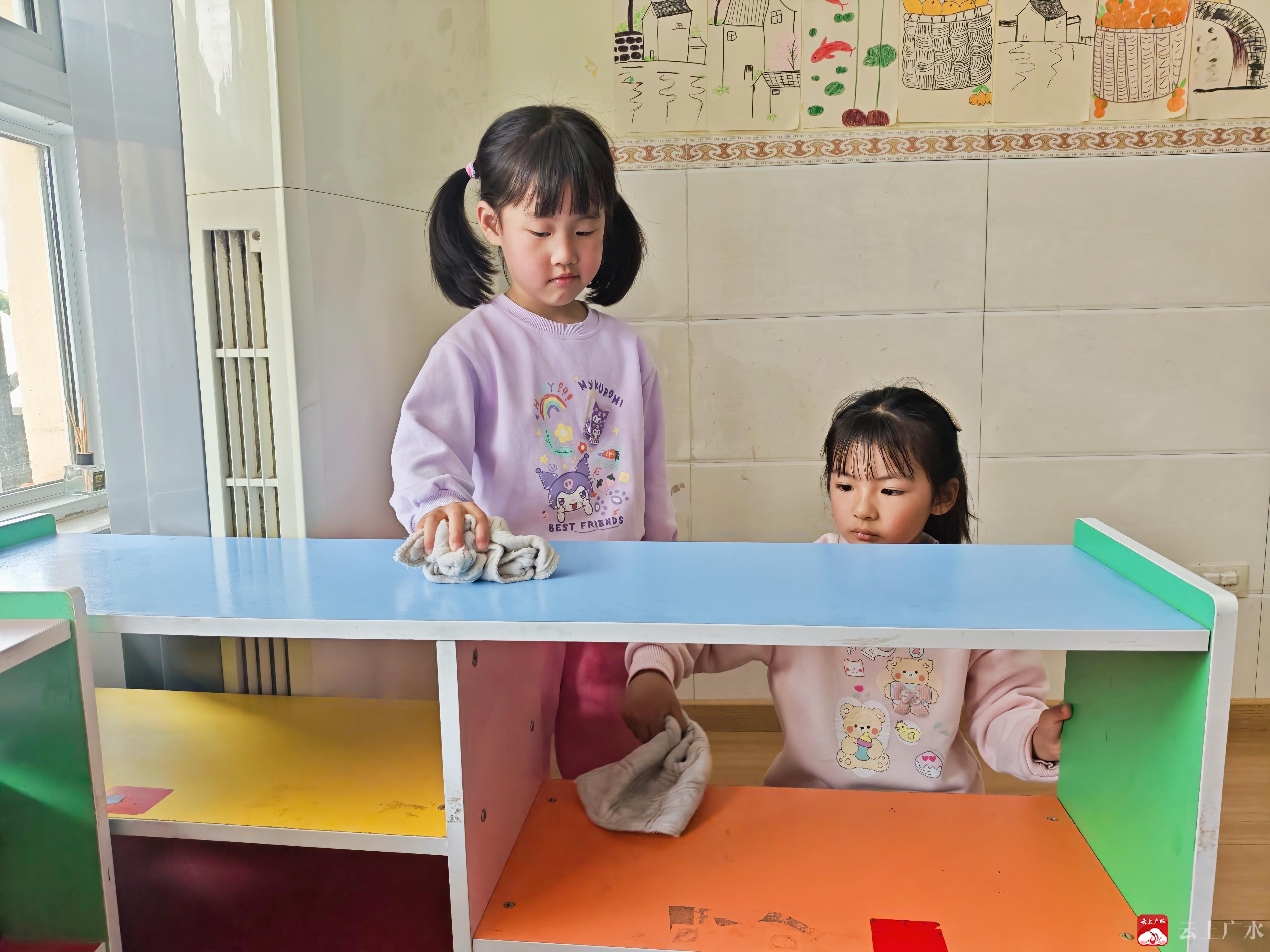 在实践操作环节,老师们重点带领幼儿学习规范的七步洗手法,手把手指导幼儿正确洗手,让幼儿养成勤洗手、讲卫生的好习惯。同时,各班开展了“我是卫生小能手”班级大扫除活动,孩子们纷纷拿起小抹布、小扫帚,主动擦拭桌椅、整理玩具、清扫班级角落,树立爱护环境、保持卫生的责任意识。