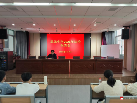 为增强青少年法治意识,预防未成年人违法犯罪,提高学生自我保护能力,2026年4月9日下午,广办武元中学举行2026年法治报告会。学校全体师生参加了此次活动。