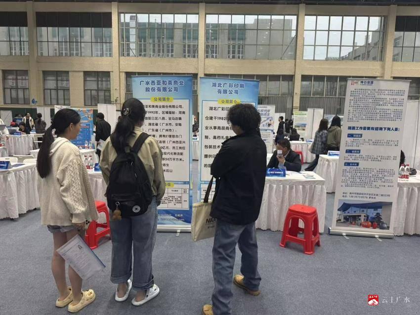 招聘会现场热闹非凡,人头攒动。广水市的企业展位前围满了前来咨询的学生,他们手持简历,眼神中充满了对未来的期待和憧憬。企业代表们热情洋溢,耐心细致地向学生们介绍企业文化、岗位信息、职业发展前景等内容,并认真解答学生们的疑问。