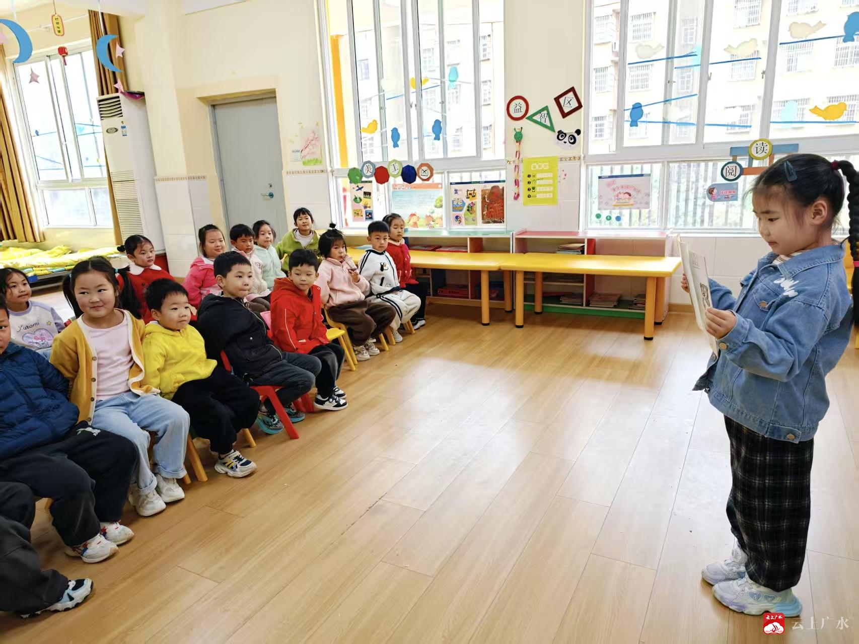 为了让幼儿充分展现阅读收获,勇敢表达自我,还设置了“幼儿故事分享会”环节。孩子们踊跃参与,化身小小故事家,自信地站上讲台,捧着自己心爱的绘本,用稚嫩又清晰的语言,讲述着一个个充满童趣的故事。从温馨的亲情故事,到趣味的动物童话,每一个故事都被孩子们演绎得格外生动。在讲书的过程中,孩子们不仅锻炼了语言表达能力和自信心,更在彼此的分享中收获了快乐,拓宽了视野,真切体会到阅读带来的成就感。