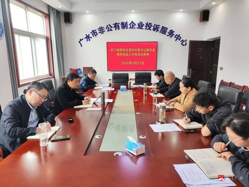 4月23日,广水市工商联召开专题会议,第一时间传达学习市委书记崔传金调研统战工作座谈会精神,研究部署贯彻落实举措。市工商联全体干部职工参加会议。