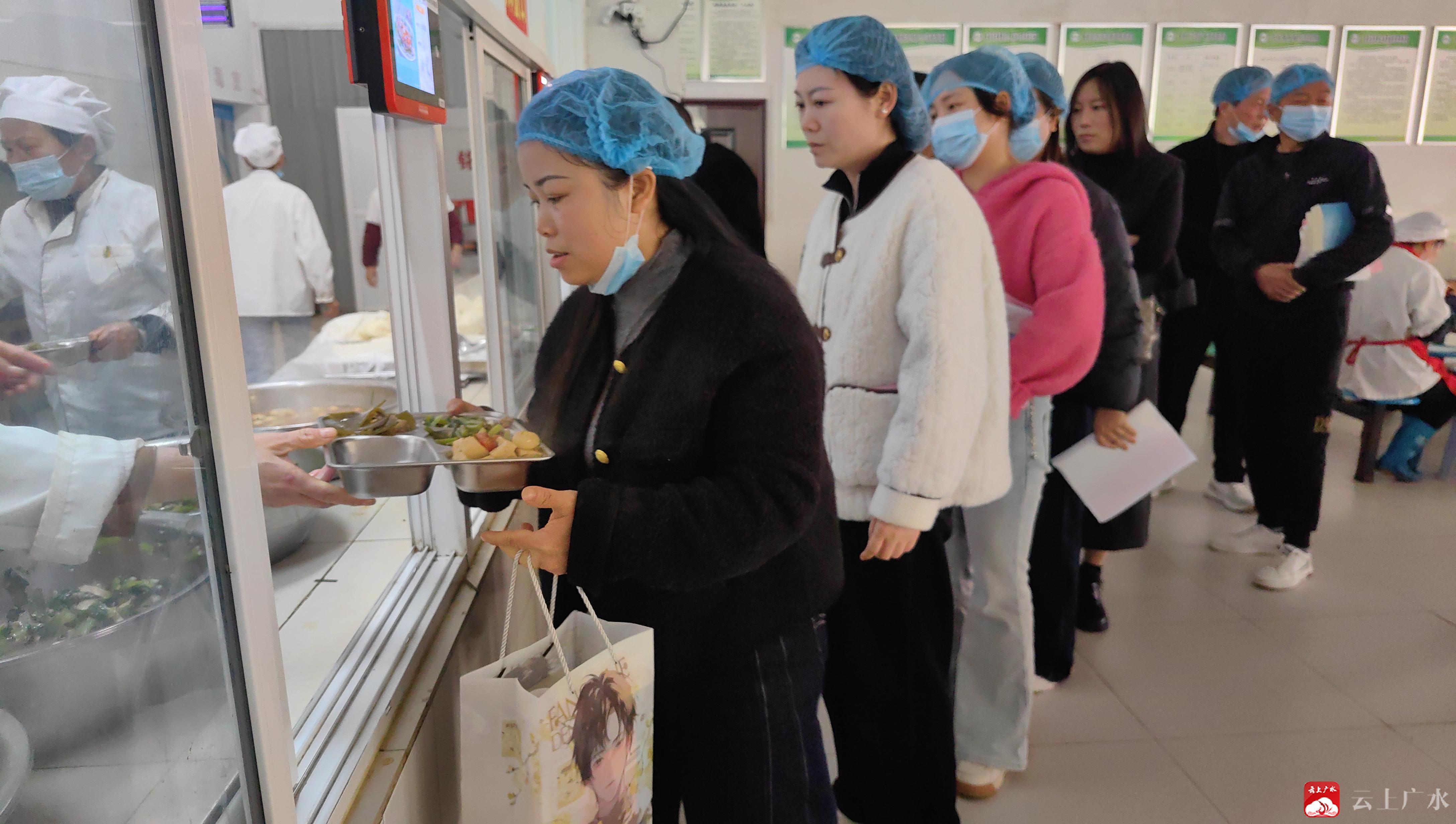 随后,家长代表们穿戴防护装备,在学校后勤负责人带领下,实地走访食堂操作间、清洗消毒间、食品留样间、储物间等核心区域。工作人员现场讲解食材定点采购、入库验收、规范加工、餐具高温消杀、食品48小时留样等全流程管理细节,整洁的后厨环境、严谨的操作规范、透明的监管流程,让家长们切实感受到学校“明厨亮灶”的用心与安心。