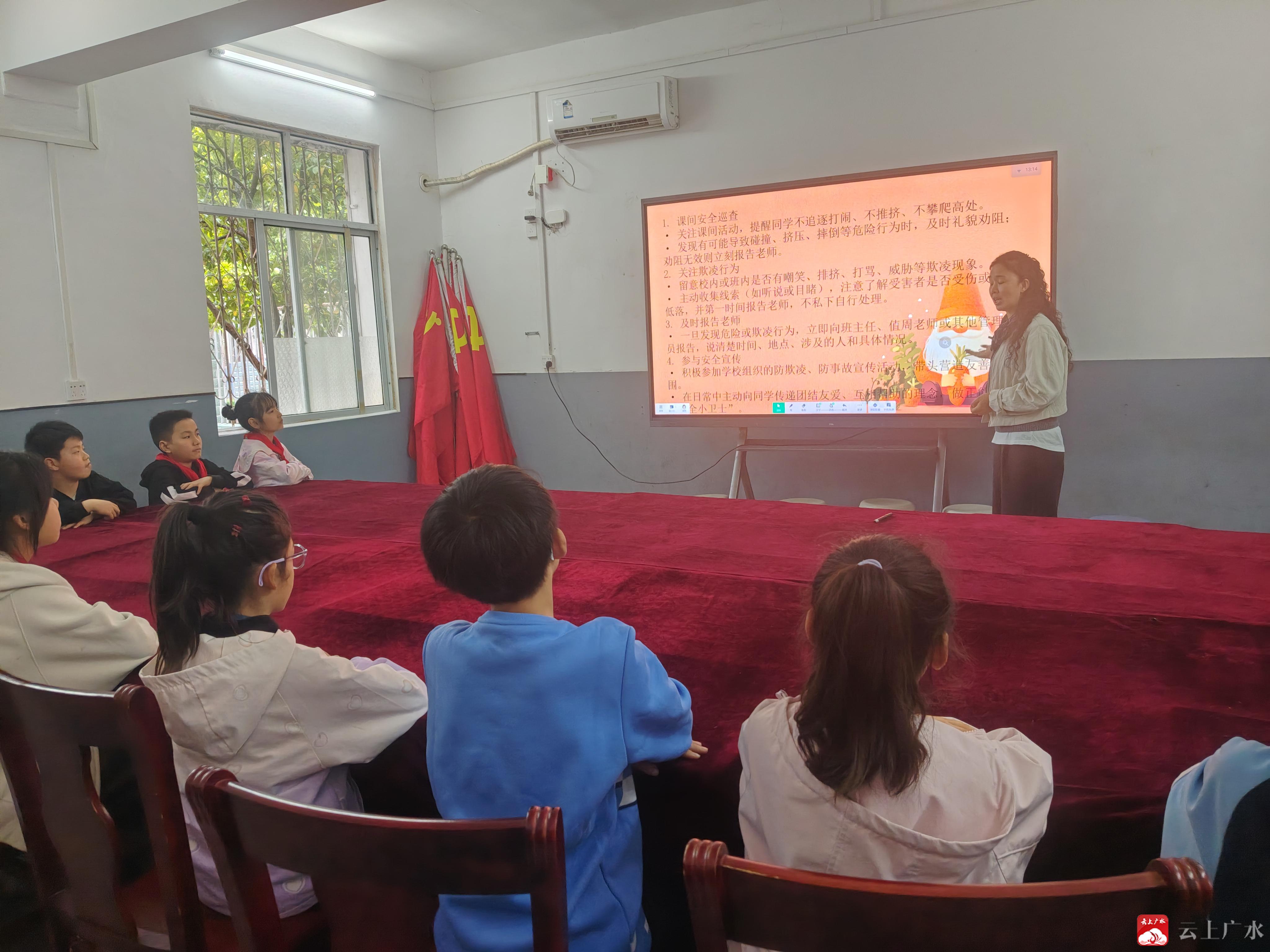 培训中,老师详细讲解了安全员作为“信息员”“劝导员”“调解员”的职责与工作方法:发现教室门窗、电器等设施异常,及时报告老师;课间劝阻追逐打闹、攀爬栏杆等危险行为;留意同学矛盾或异常情况,第一时间向老师反映。老师还重点强调了上下楼梯、课间活动、午休等时段与区域的巡查要求,指导大家礼貌提醒、规范上报,并提醒安全员保护好自身安全,不擅自处置超出自身能力的险情。